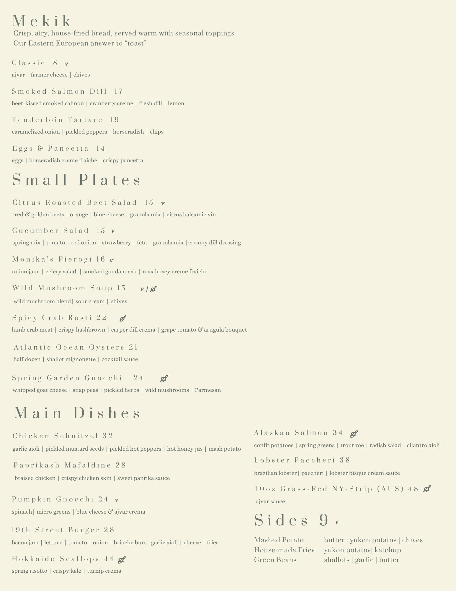 gf = gluten free v= vegetarian