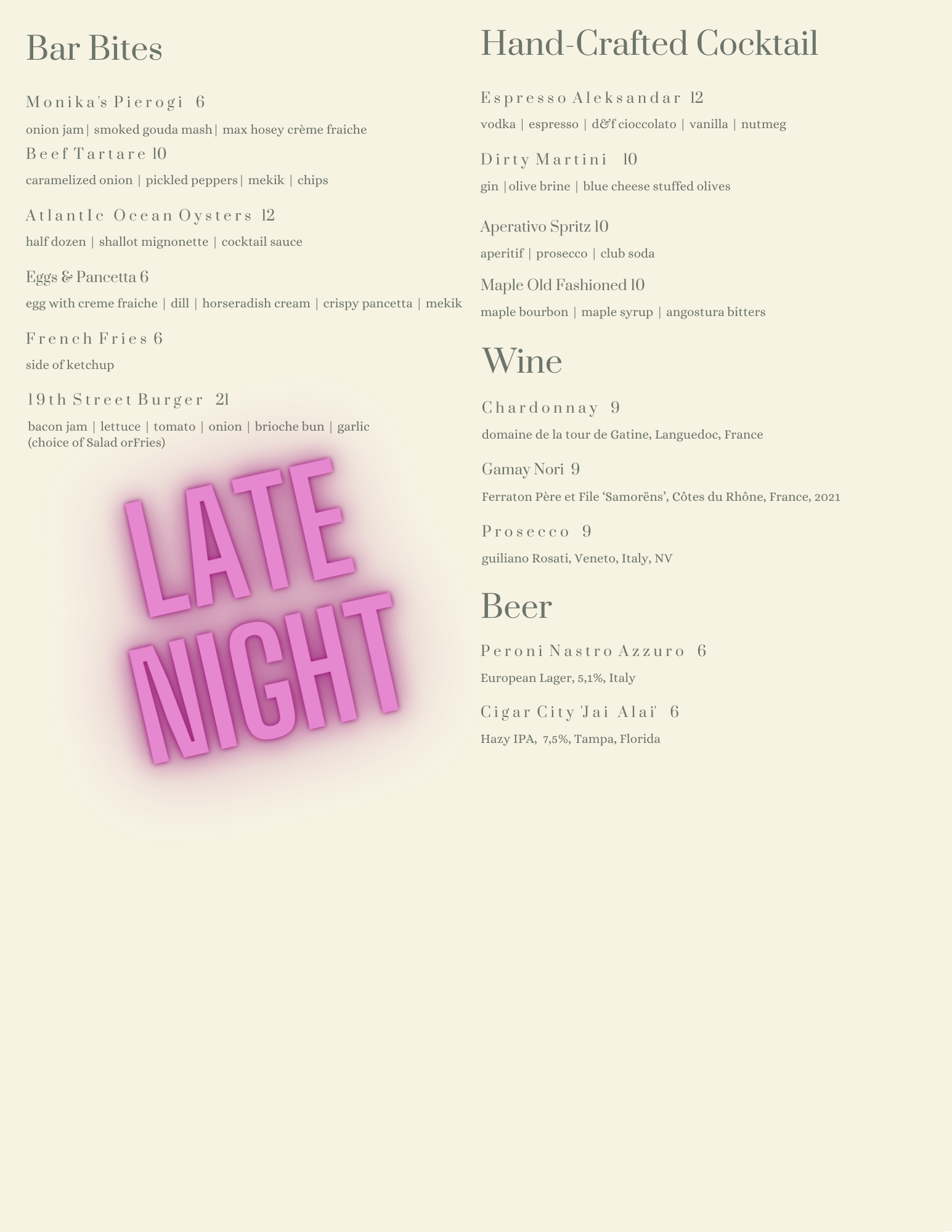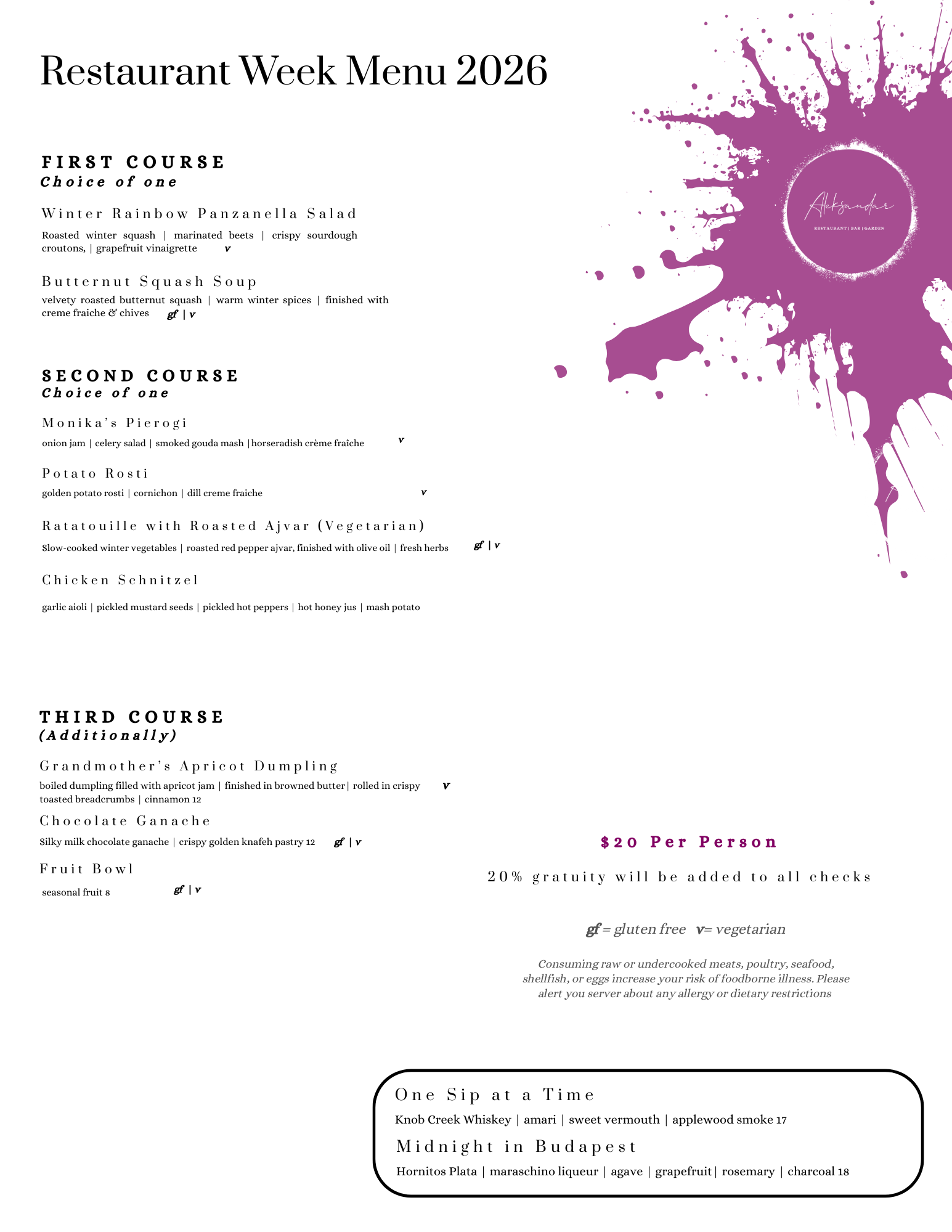 20% gratuity added for parties of five or more.