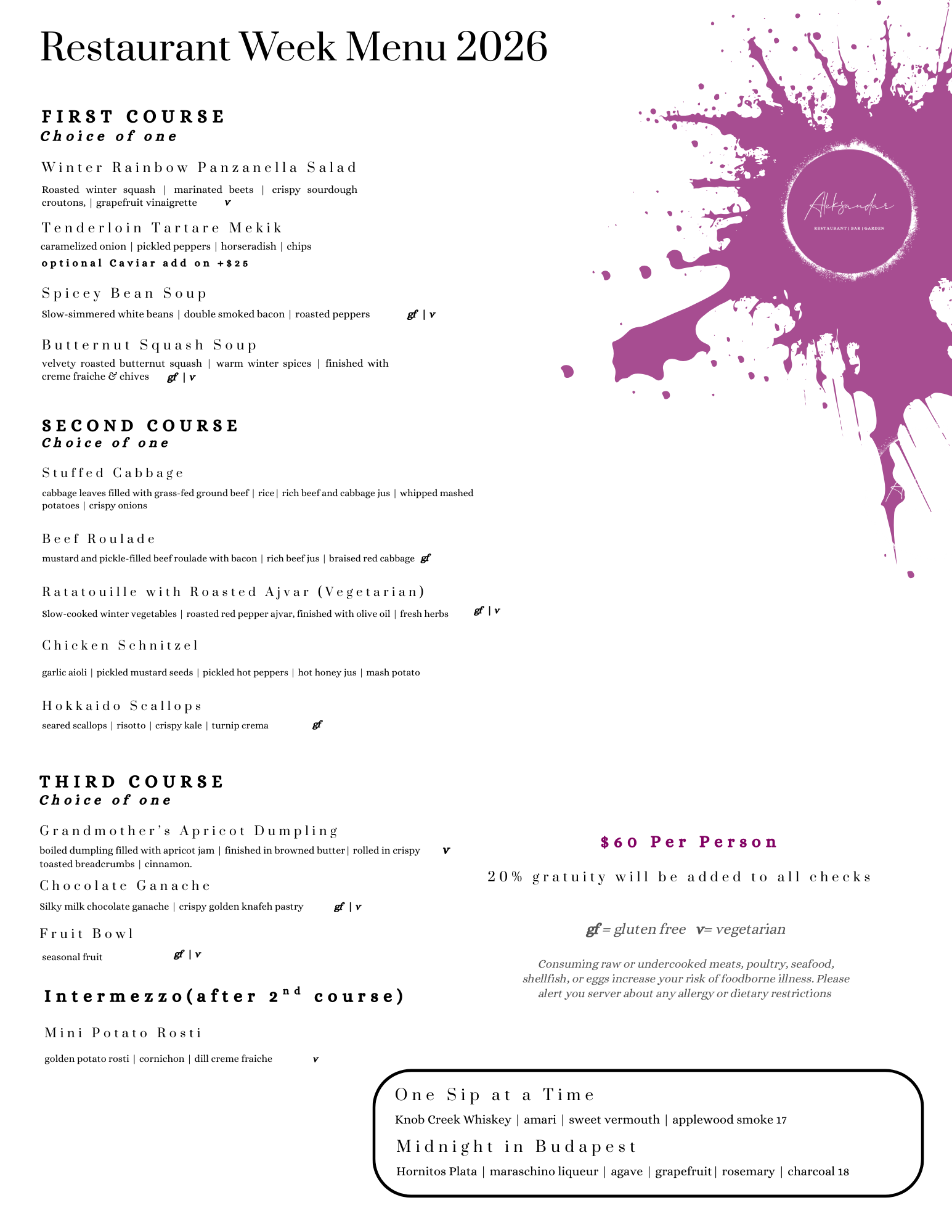 of foodborne illness. Please alert you server about any allergy or dietary restrictions